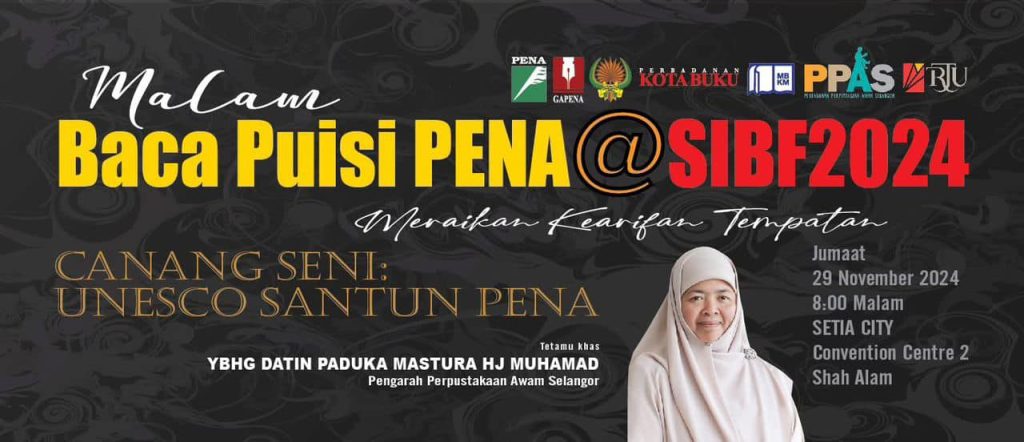 Shah Alam, 27 November 2024 – Persatuan Penulis Nasional Malaysia (PENA) sekali lagi mencipta sejarah dengan pelancaran koleksi buku terbaharu bertajuk “Buku PENA-Malaysia Madani”, menampilkan 32 judul yang mencerminkan keunikan dan kekayaan budaya, pemikiran, serta sastera tanah air. Koleksi ini boleh didapati di reruai Tulus Kata @ PENA sempena Selangor International Book Fair 2024 yang sedang berlangsung di Setia City Convention Centre dari 27 November hingga 3 Disember 2024.